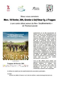 Lire la suiteMercredi 18 février, 20h, au Grenier à Sel / Omar Sy – Projection débat film « Soulèvements »
